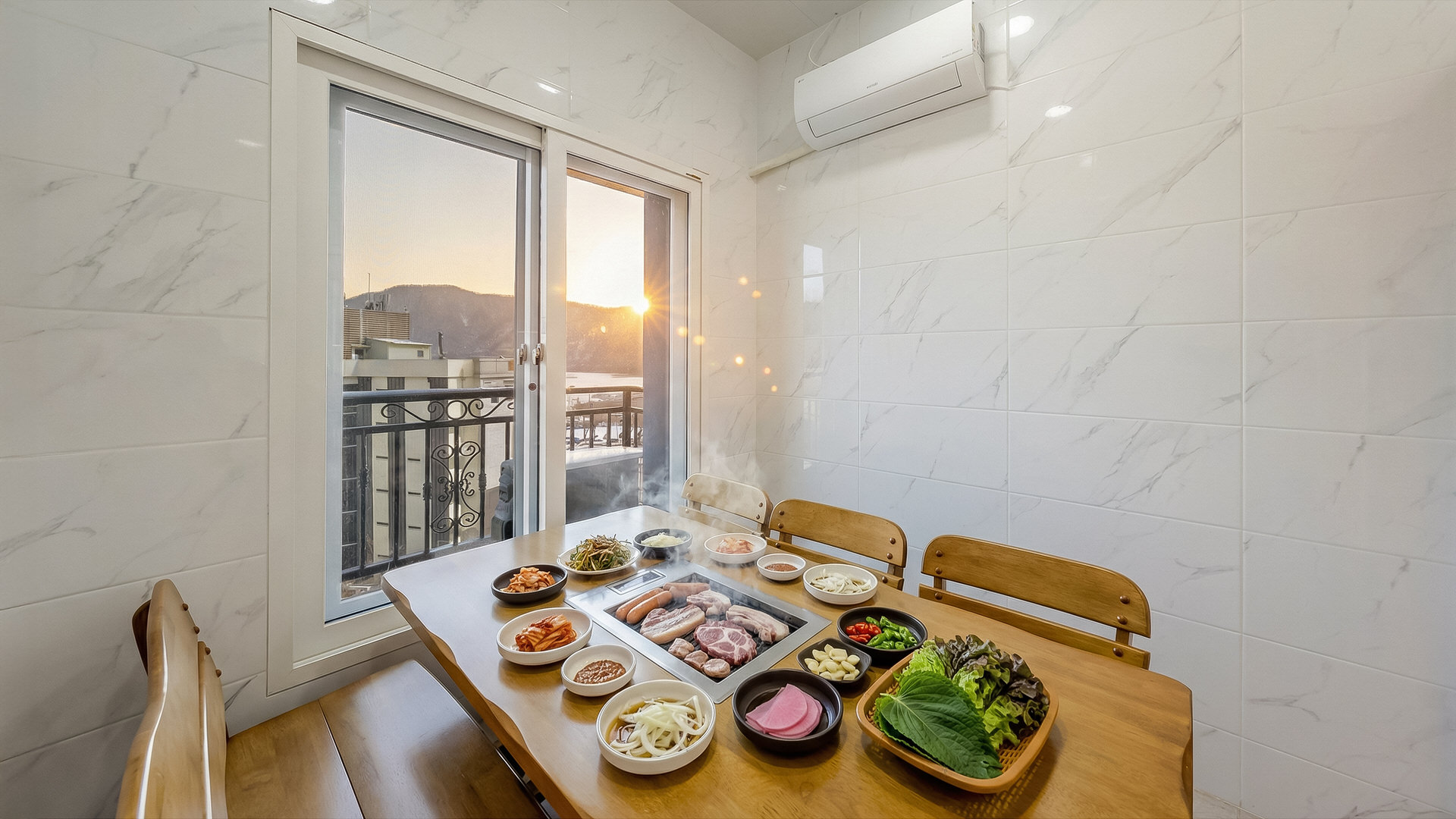 조용한 공기 속에서 즐기는 바베큐 식사 시간이